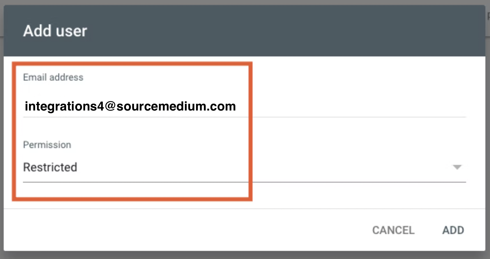 Grant SourceMedium access by adding integrations4@sourcemedium.com and set permission to Restricted, and click ADD