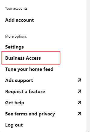 Navigate to top-right corner of your screen > Business Access