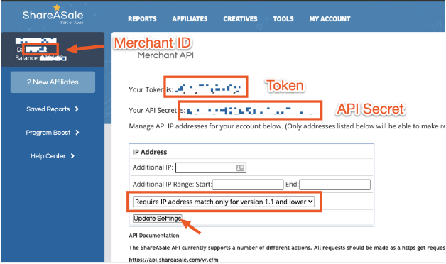- Navigate to Merchant API > select Require IP address match only for version 1.1 and lower > Update Settings