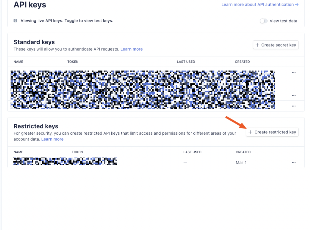 - See Restrictive API token documentation on the Stripe website for further instructions