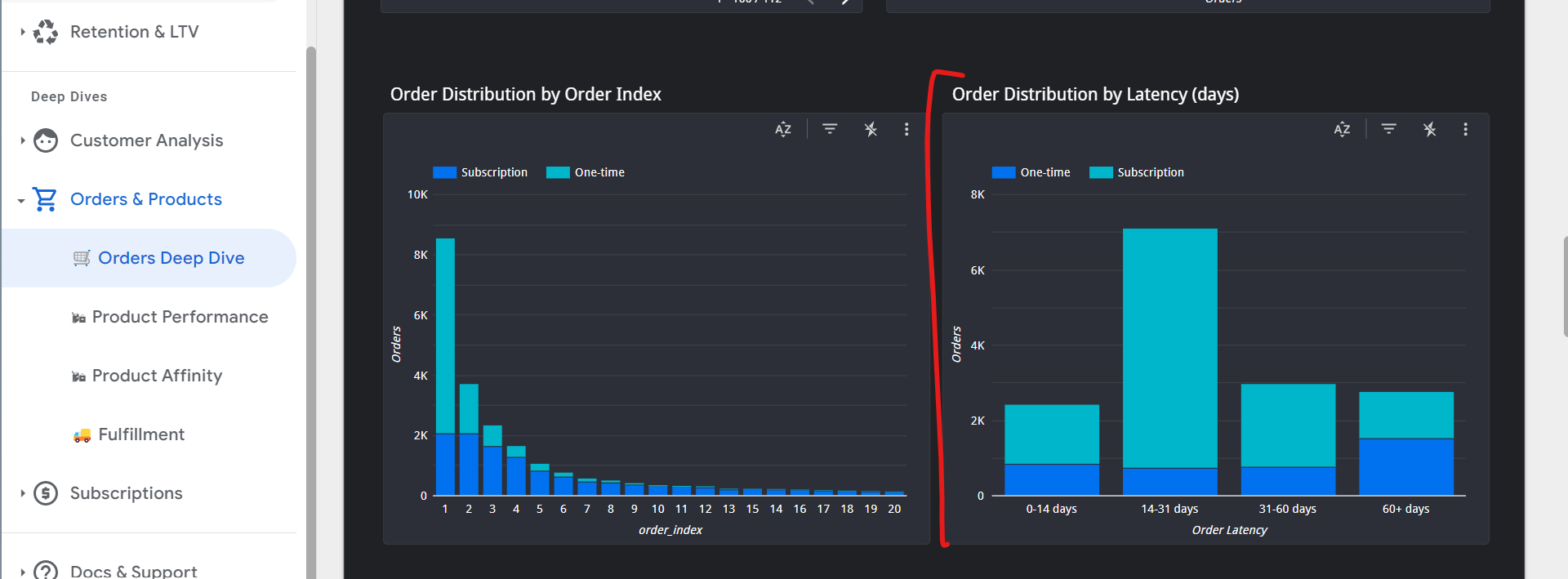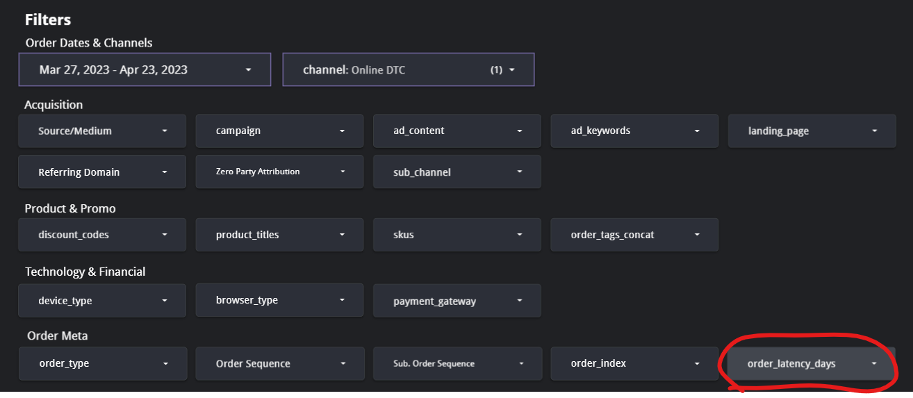 Orders Deep Dive is the place to go for understanding order latency. Coupling the order-level filters on this page with this chart can give insights into how different segments experience different order latency curves:
